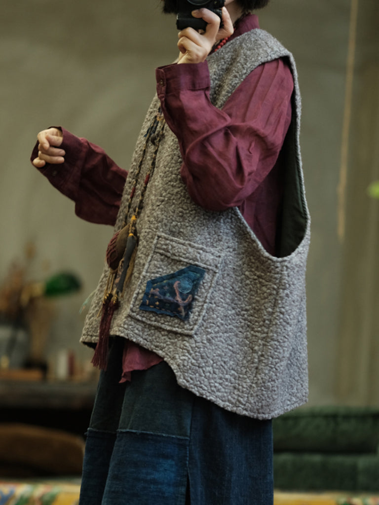 Izrađen od kvalitetnog pamuka, ovaj svestrani podstavljeni prsluk pruža potrebnu toplinu za prijelazna godišnja doba. Minimalistički jednobojni dizajn i opuštena silueta s O-izrezom čine ga jednostavnim komadom za slojevito nošenje koji nadopunjuje svaku ležernu garderobu. Idealan za jesensko i zimsko nošenje, kombinira praktičnu izolaciju s decentnom sofisticiranošću.
