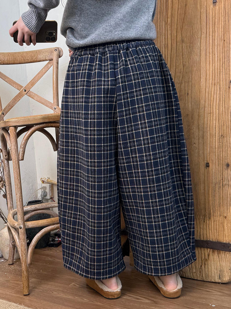 Ženske zimske vintage karirane harem hlače s flis podstavom