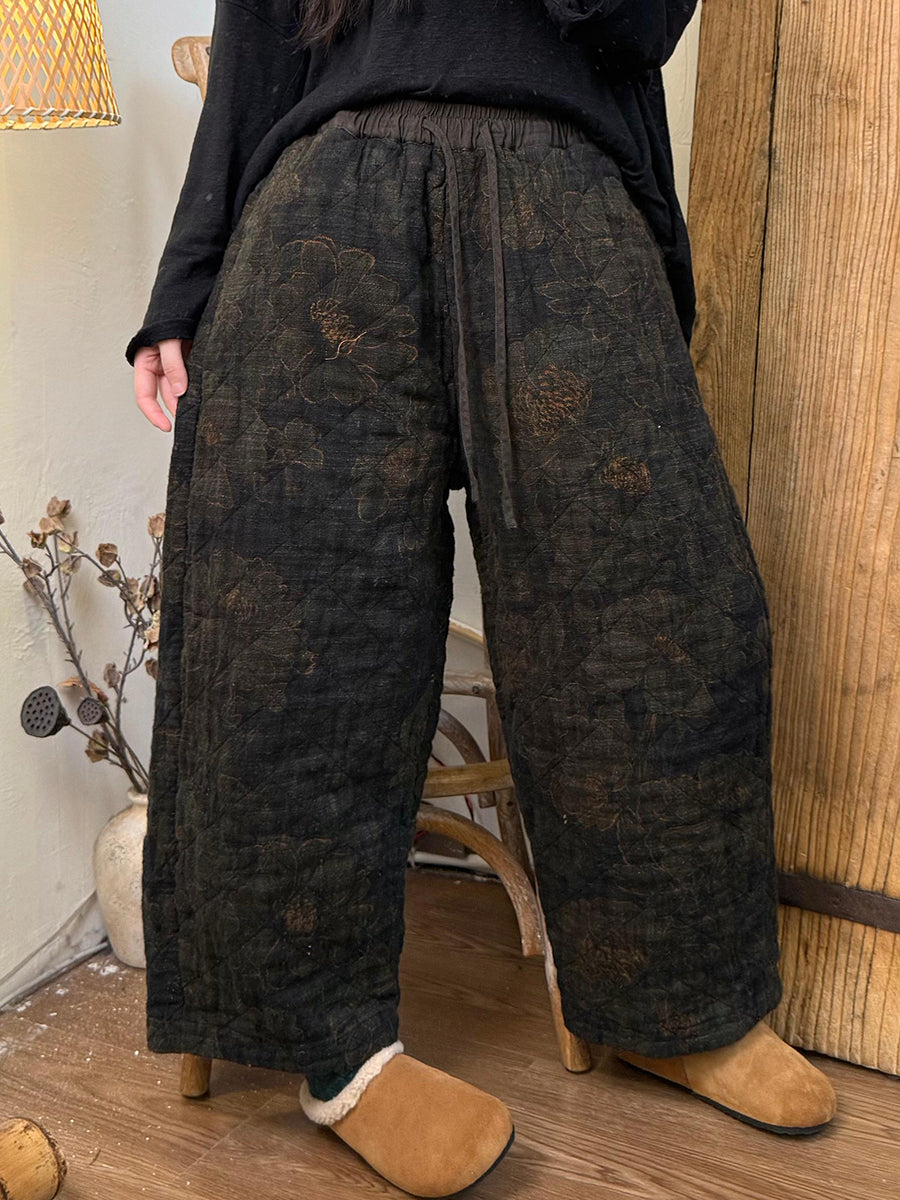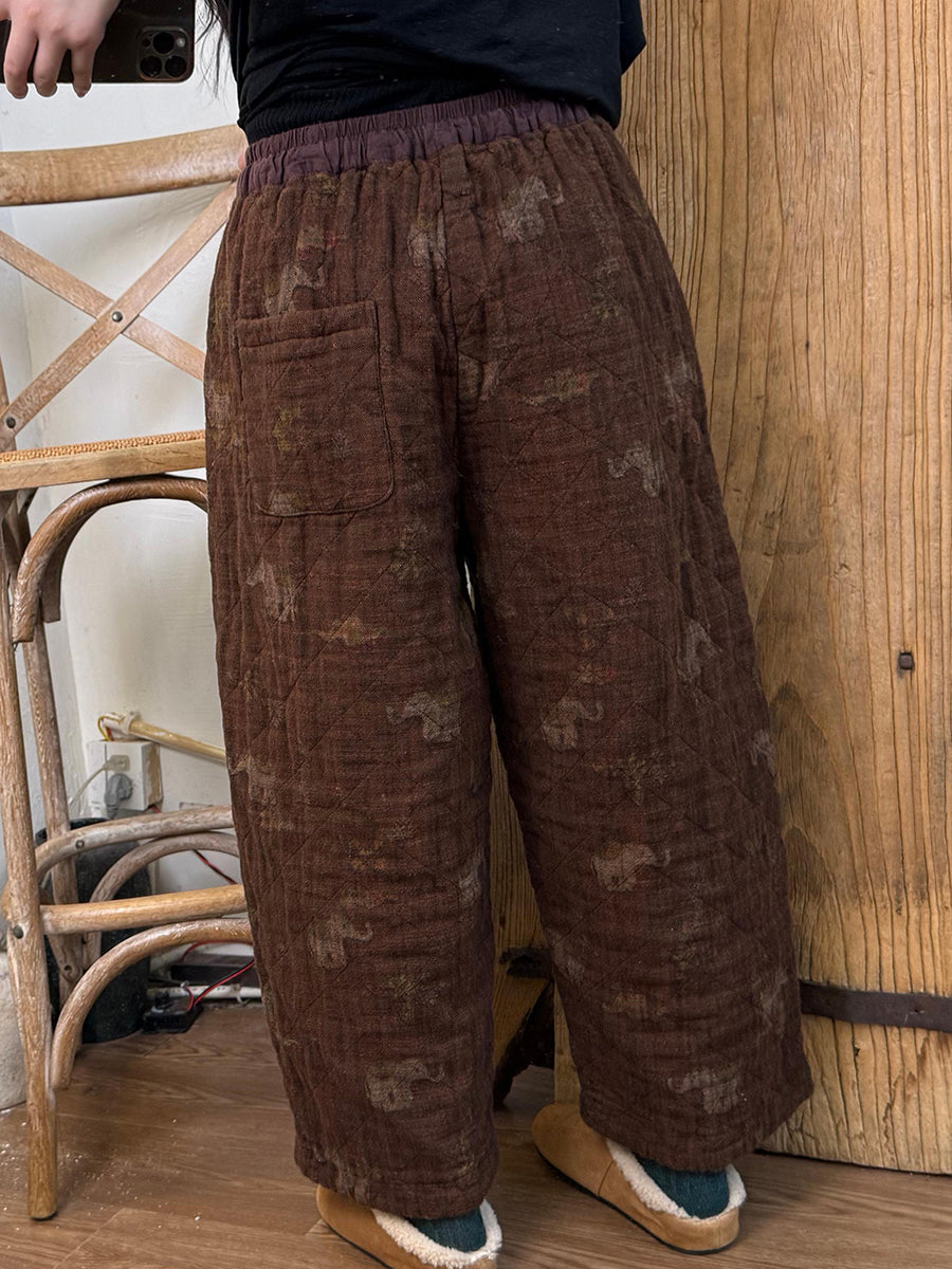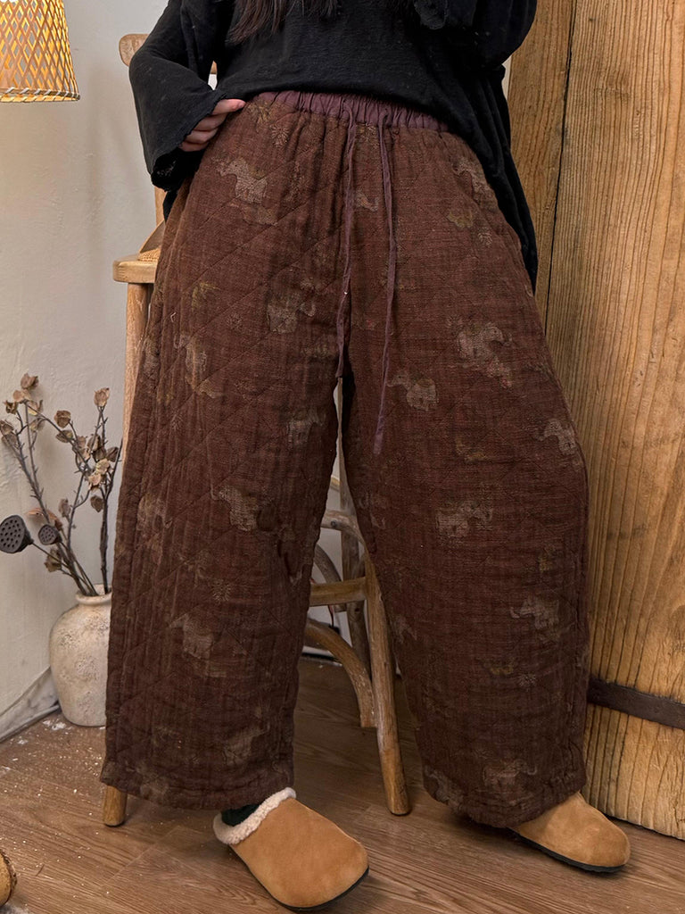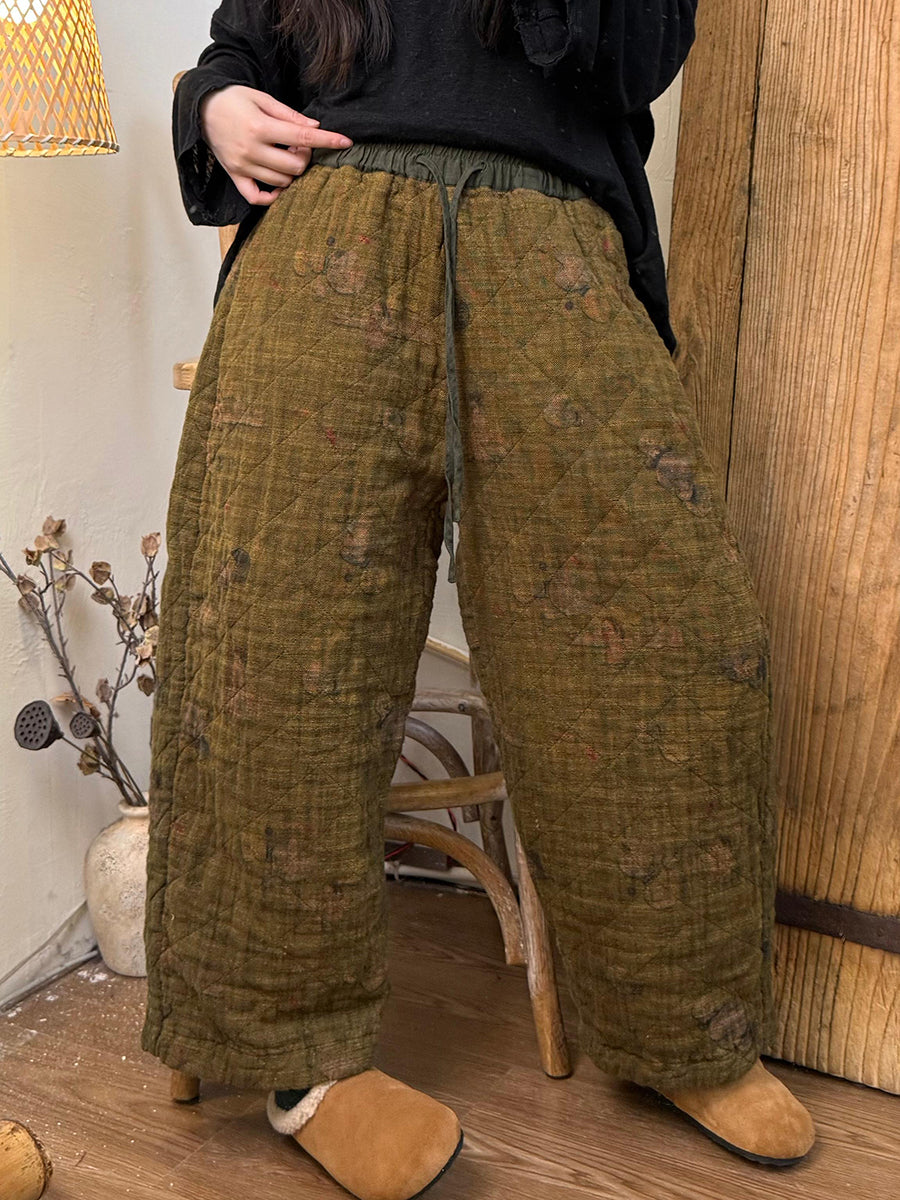 Ženske zimske ravne hlače s vintage printom i podstavljenim lanom